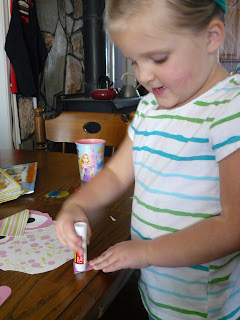 I am always a bit frustrated when I see kids craft projects posted on the internet that couldn't possibly have been created by a kid. Adults make "perfect" craft projects but kids create very differently from adults and guess what? They think their final product is amazing no matter how it looks. I am a firm believer in letting my children express themselves as they create and even though I sometimes have to stop myself from "perfecting" their project, I encourage them to make it how they want. So the other day when we were going to make some birthday cards for grandma I quickly whipped up this project: